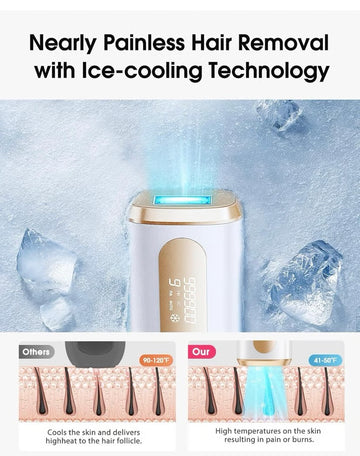 Our built-in ice-cooling feature keeps your skin calm while IPL targets hair follicles for long-lasting smoothness. No more razor burns, waxing pain, or costly salon visits.